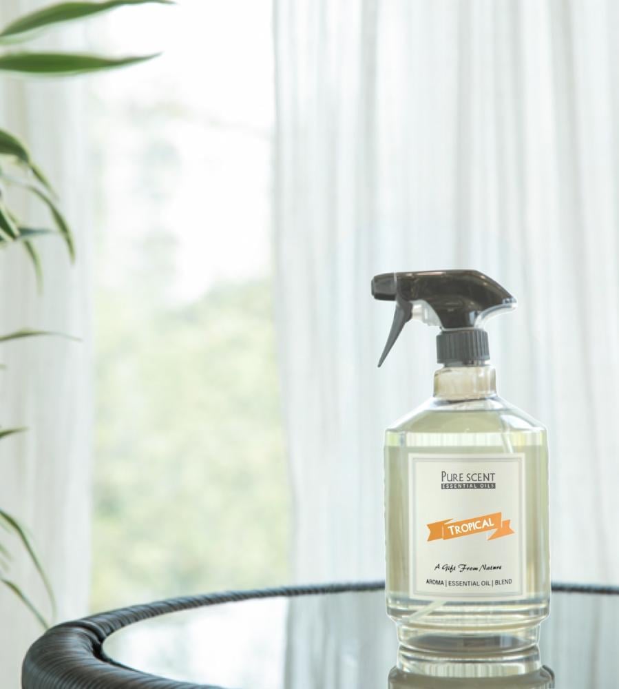 معطر المفارش تروبيكال من بيور سينت وهو مزيج من الروائح المنعشة مثل توت العليق الأحمر عندما يمتزج بزهر البرتقال والخوخ ويتناغم بعد ذلك مع نفحات من الزهور الناعمة مثل الياسمين والفاوانيا ، مما يجعل المكان مفعم بالحيوية والسعادة